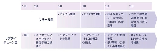 - 企業間取引の進化:企業間取引は単なる「業務のIT化」を超え、商流そのもののデジタル変革へと進化しています。サプライチェーン型とリテール型のビジネスモデルが高度に発展し、業務効率化と競争優位の確立が求められています。