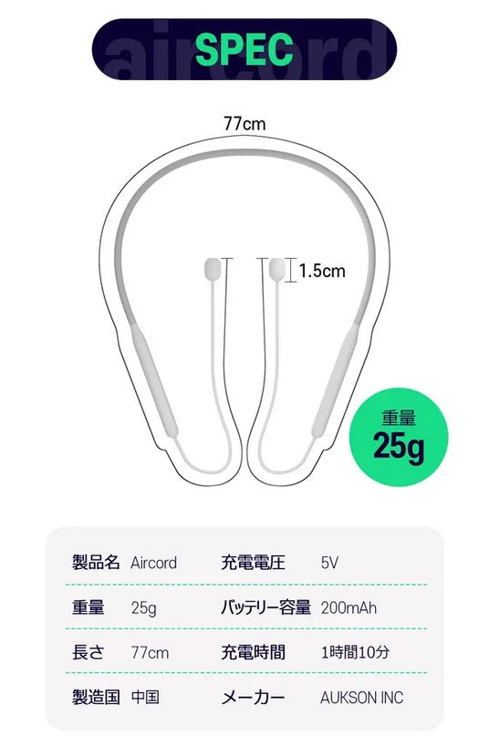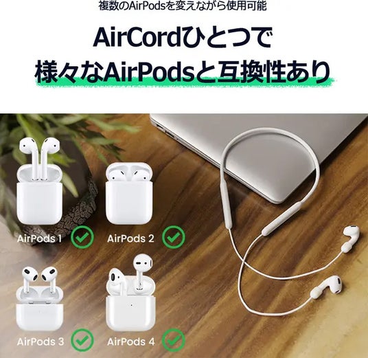 充電切れ&紛失を解決! AirPods用ウェアラブル充電ネックバンド「AirCord」が登場。落下防止設計で充電中も使え、アクティブシーンも安心!