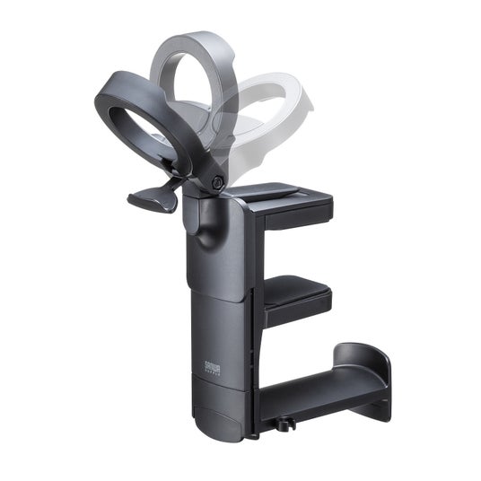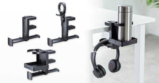 サンワサプライ株式会社(本社:岡山市北区田町1-10-1、代表取締役社長 山田和範)は、ヘッドホンを2台収納できるヘッドホンフック「PDA-STN73BK」「PDA-STN74BK(ドリンクホルダー付き)」「PDA-STN75BK(マグネットホルダー付き)」を発売しました。机へ脱着の際にも力が要らず、簡単に、そしてしっかり取り付けできる新しい固定方法のフックです。上下昇降デスクにもおすすめです。