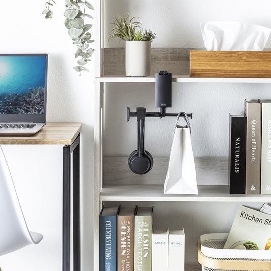デスクや棚など様々な場所に挟んで取り付け、便利に使えます。