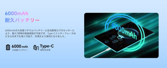 6000mAhの大容量リチウムバッテリーと低消費電力プロセッサーにより、最大7時間の動画視聴が可能です。Type-Cインターフェースはどちら向きでも挿入可能で、充電がより便利になりました。