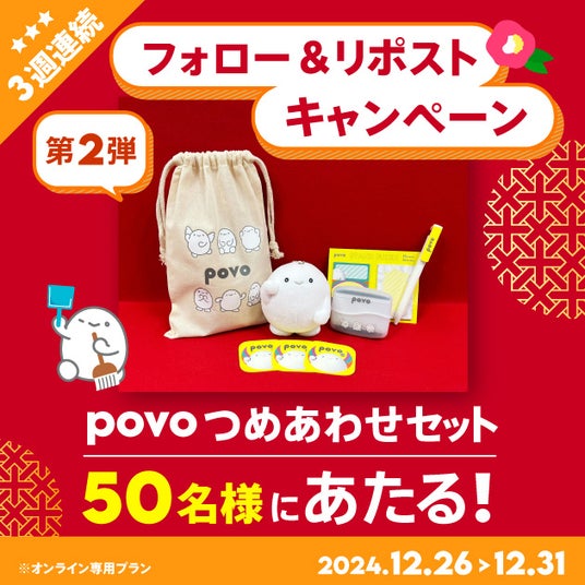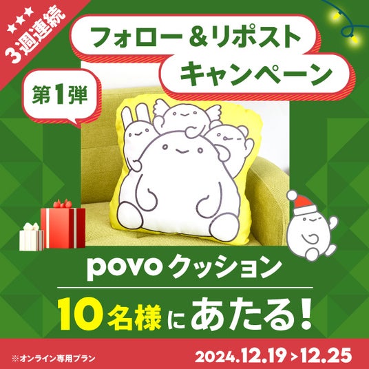 3週連続で、木曜日(12月19日/12月26日/1月1日)から翌週水曜日まで、povoのオリジナルグッズが抽選で合計160名にあたるXリポストキャンペーンを実施します。povo公式Xアカウント(@povo_official)をフォローのうえ、対象の投稿をリポストいただいたお客さまが対象です。