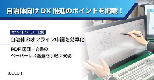 株式会社ワコムは、消防署への届出や建築確認申請など、従来窓口で行われていた手続きのオンライン化によりデジタルトランスフォーメーション(DX)推進に取り組む自治体向けのホワイトペーパー、「自治体のオンライン申請 | 電子文書・図面のペーパーレス審査を手軽に実現」を公開いたしました。