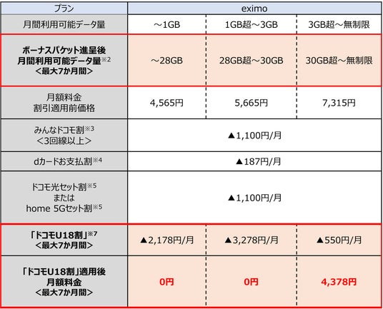 株式会社NTTドコモ(以下、ドコモ)は、新規契約(他社からの乗り換え含む)、機種変更、契約変更、プラン変更のお手続きにおいて、料金プラン「eximo」をご利用いただく18歳以下のお客さまを対象に、最大7か月間※1、27GB/月のボーナスパケットの進呈※2と月額料金を割り引く「ドコモU18割」を2024年12月20日(金)から提供開始いたします。