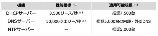 ※1 それぞれ、1ノード・1アプリケーションで動作した場合の測定。 ※2 数値は目安であり、構成・使用条件によって異なります。 ※3 ソフトウェア疑似試験による測定。 ※4 自身が保持しているゾーン・レコードに対する問い合わせ。