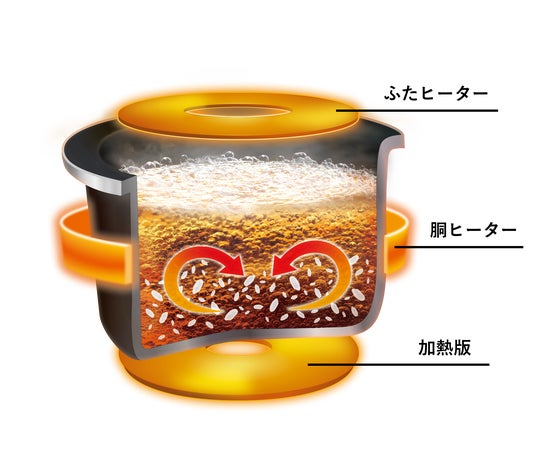 ・ふたヒーターつきでふっくらおいしい「全面加熱」