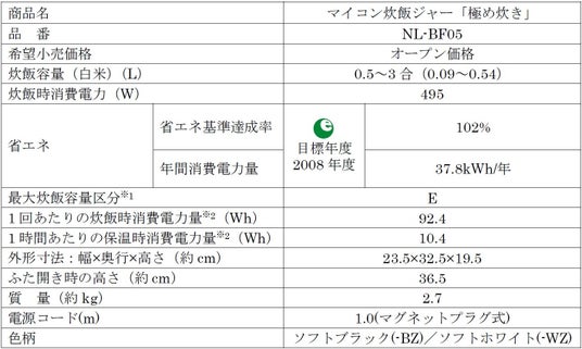 マイコン炊飯ジャー「極め炊き」NL-BF05 左より、ソフトブラック(-BZ)、ソフトホワイト(-WZ)