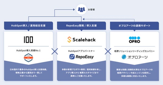 帳票ソリューションのリーディングカンパニーである株式会社オプロと、HubSpotのエリートパートナーである株式会社100と共同で開発し、日本市場特有のニーズに対応した柔軟な帳票発行を実現