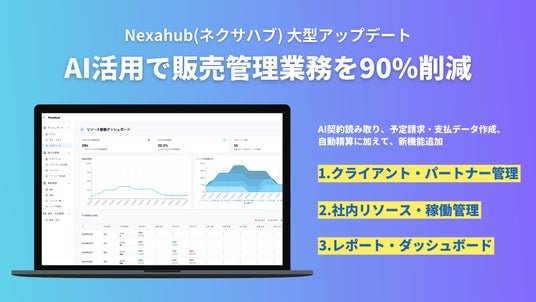 契約・請求・支払い業務をAIで自動化する「Nexahub」クライアント・パートナー管理、リソース管理、ダッシュボードを強化した新バージョンを公開