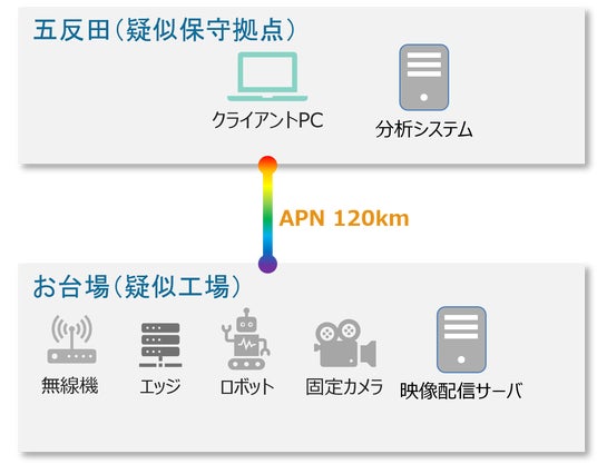 [注4] 直線距離は5km程度ですが、本検証では、複数拠点を経由したネットワークとして総距離120kmにて通信させています。五反田は東京都品川区、お台場は東京都港区です。