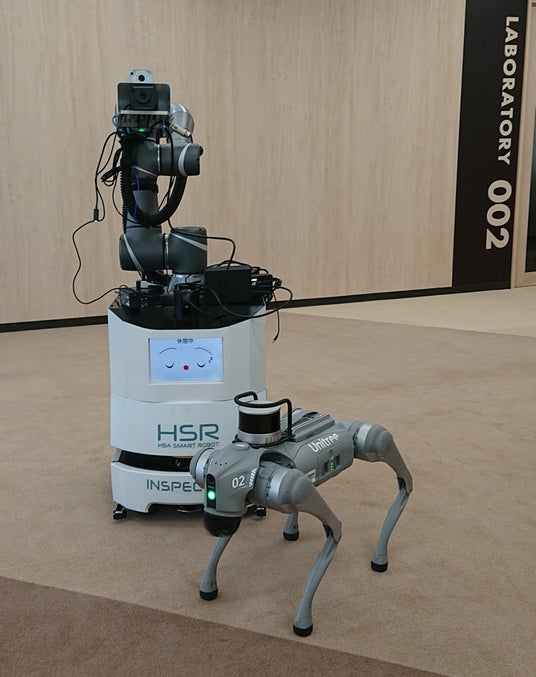 図3.検証で使用したロボット (左上)NTTコムウェアが利用したHBA社製HBA SMART ROBOT (右下)NTTデータグループが利用したUnitree製犬型ロボット