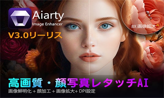 人気のAI高画質化ツールV3.0は、「More-Detail GAN v3」、「顔のレタッチ機能」と「DPI(解像度)の書き出し設定機能」を2024年12月にリリースしました。これらの新機能は、効率化で大幅な性能向上と高画質化を実現することが可能となります。詳細は公式サイト(https://jp.aiarty.com/aiarty-image-enhancer/) でご確認いただけます。