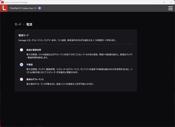 「Lenovo Commercial Vantage」による、パフォーマンスの制御、BIOSを含むソフトウェアのアップデートなどの使いやすさには定評がある。これらLenovo独自のソフトウェア群のユーザーインターフェースはさらに進化したといえるだろう。