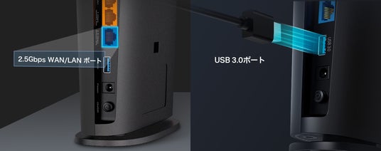 - 有線ポート:2.5ギガビットWAN/LANポート×1、ギガビットWAN/LANポート×1、ギガビットLANポート×3、USB 3.0ポート×1