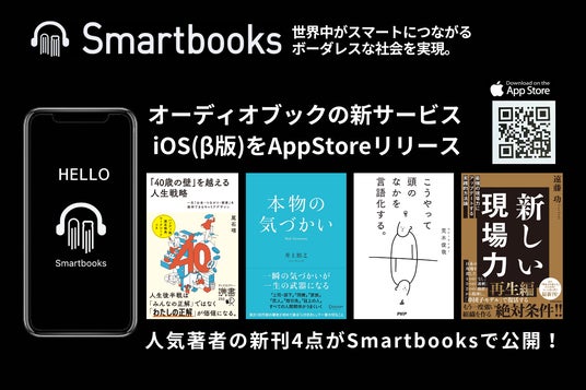 スマートブックス株式会社(本社:東京都世田谷区、代表取締役社長:相内 遍理、以下:スマートブックス)は、AIナレーターを活用した新しいオーディオブックサービスのベータ版をAppStoreで2024年12月23日3:33PMにリリースしました。Smartbooksは、新作ビジネス書を従来より2ヵ月早く(最短3日で)オーディオブックで聴くことができるサービスです。スマートブックスは、AI技術を駆使し、誰もが本の魅力を楽しめる世界を出版社方々と共に創造していきます。未来のオーディオブック体験を一緒に作りましょう。あなたの意見がプロダクトの進化に繋がります