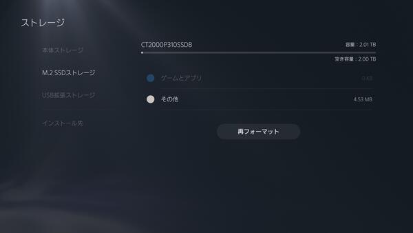 今回、市販のヒートシンクを装着し、PS5の拡張スロットに装着してみた。起動すると、ストレージのフォーマットを要求されるので、実行する。あとは、必要に応じてゲームを本体ストレージからP310(2280)へ移動すればいい。
