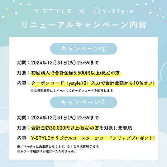 Y-STYLE公式ストア リニューアルキャンペーン内容