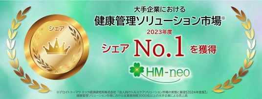 NTTテクノクロス株式会社(本社:東京都港区、代表取締役社長:岡敦子、以下「NTTテクノクロス」)の健康管理システム「HM-neo」は、デロイト トーマツ ミック経済研究所株式会社(本社:東京都千代田区丸の内、代表取締役社長:渡邊茂男)が実施した2024年度の調査(*1)にて、健康管理ソリューション市場における従業員規模3000名以上の大手企業の売上高シェアが18.4%を占め、シェアNo.1を獲得しました。