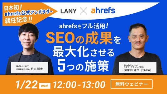株式会社LANYが日本初の「ahrefs公式アンバサダー」に就任!特別ウェビナー「Ahrefsをフル活用!SEOの成果を最大化させる5つの施策」を1/22(水)に開催