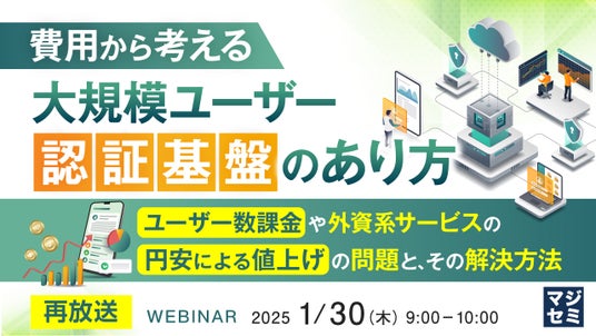 マジセミ株式会社は「【再放送】費用から考える、大規模ユーザー認証基盤のあり方」というテーマのウェビナーを開催します。