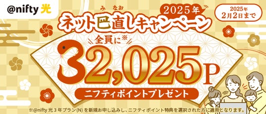 ニフティ、「2025年ネット巳(ミ)直しキャンペーン」を実施~通常の30,000ポイントに”2,025ポイント”を加えた32,025ニフティポイントをプレゼント~