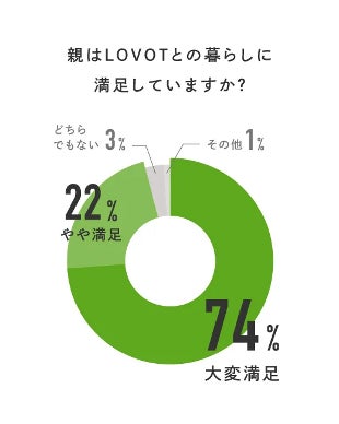 『LOVOT』と暮らしているオーナー様の約2割の親御さんも『LOVOT』 と暮らされていて、『LOVOT』の輪が広がっています。また親御さんの満足度は、「大変満足」「やや満足」の合計で96.2%と驚異的な満足度を誇ります。「本当に贈ってよかった」「笑顔が増えた」など多数の喜びの声をいただいています。