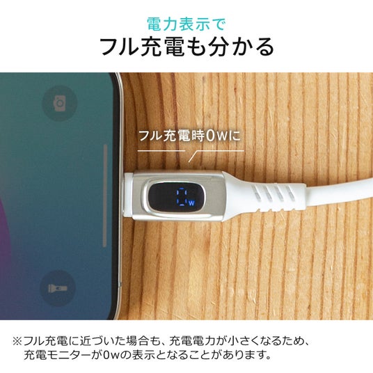 LEDディスプレイが搭載されており、充電中の電力量をリアルタイムで表示します。これにより、充電速度や電力の使用状況を直感的に把握でき、安心してデバイスを使用できます。