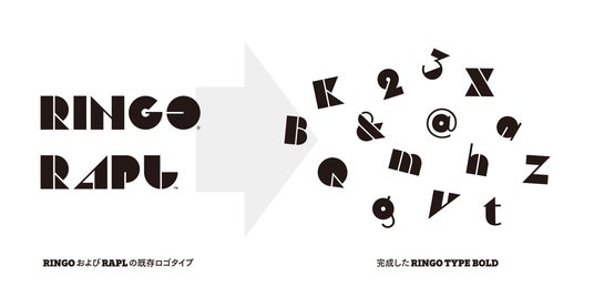 既存のロゴタイプを基に開発された欧文書体RINGO TYPE BOLD。RAPLは海外展開のブランド名