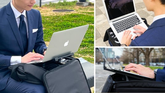 10秒で膝上デスク。スキマ時間を生産的な時間へ変える、仕事効率爆上げリュック 「四次元かばん Hack」を12/26(木)より販売開始