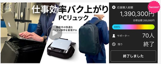 - Makuakeの先行予約販売(実施期間:2024年6月2日7:00~7月21日18:00)では、目標金額695%を達成し、70名の応援購入者の支援を集めました。