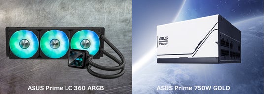 高性能なCPUを支えるCPUクーラーには“ASUS Prime LC 360 ARGB”を採用。広い接触面で効率的に吸収するヘッド部と、優れた放熱性能を誇る360mmラジエーターの組み合わせによりCPUを冷却します。また電源ユニットには、低ESRコンデンサと高品質な部品を使用したATX3.0ガイドライン準拠の80PLUS GOLD認証“ASUS Prime 750W GOLD”を使用。安定動作と長期稼働に貢献します。