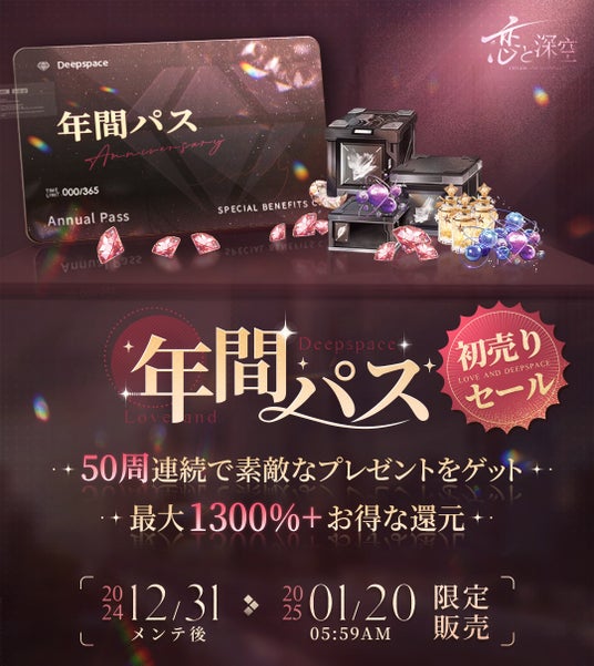 イベント説明:年間限定超お得な年間パス販売イベントが開催されます。一年BOXが3種類購入可能で、全ての一年BOXを購入すると年間パス特権を開放できます。