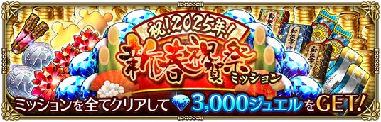 迎春!お年玉クエスト2025では、クエストクリアで最大合計5,025ジュエルを獲得できます。