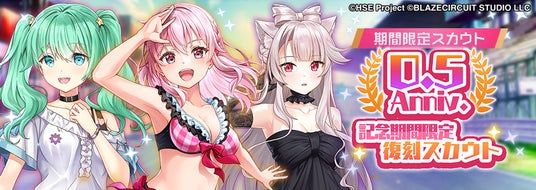 『ハイパズ』は2025年1月9日にリリースから半年を迎えます。遊んでていただいているユーザーの皆様の日頃のご愛顧により、迎えられるハーフアニバーサリーを記念して、本日より過去の期間限定スカウトに登場したキャラクターが再登場する「0.5Anniv.記念期間限定復刻スカウト」を開催します。