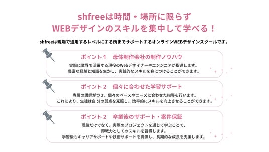 shfreeは、本当にWebデザインを学びたい人に特化したスクールです。