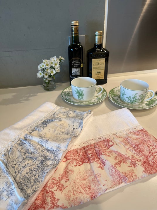 ★︎トワル・ド・ジュイ柄のタオルやエプロン:200年以上の歴史を持つフランス伝統デザインを韓国のセンスでアレンジしたタオルやエプロンはとっても優雅