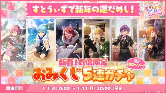 「すとぷり」の公式ゲームアプリ『すとぷりWith!!(すとうぃず)』、1月のゲーム内イベント「新春!すとぷりと神様のおみくじ 前編」開催!年始のスペシャルガチャやログインボーナスも実施中!