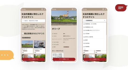 利用者や働いたことがある人などのクチコミを集約し、各施設のサービス内容や取り組み状況を見える化。誰もが簡単に情報を通じて、比較・検討できるサイトを提供し、施設と職員の採用におけるミスマッチの解消を目指します。