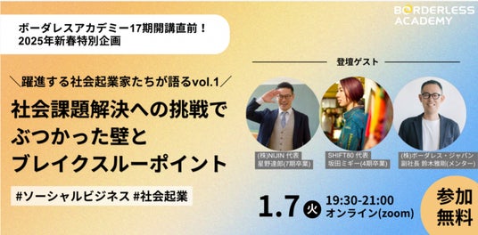 株式会社NIJIN(本社:東京都江東区、代表取締役:星野達郎)の代表・星野達郎が、社会起業のためのソーシャルビジネススクールボーダレスアカデミー主催の「2025年新春特別企画」にゲストとして登壇することをお知らせします。