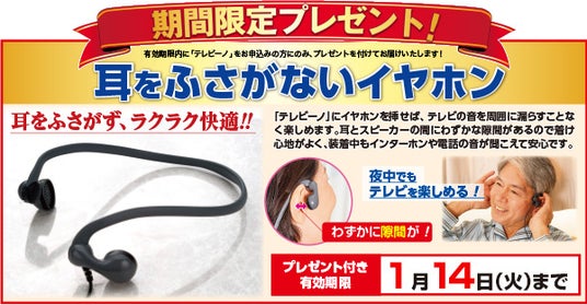 1月14日(火)までのキャンペーン期間中に本商品をご購入いただくと、期間限定プレゼント「耳をふさがないイヤホン」を贈呈いたします。