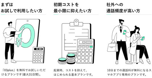 03plusは月額1,280円から。固定電話を契約するより、ずっとお得に始められます。