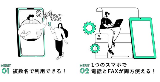 03plusは1つの電話番号を複数人で共有できるほか、FAXの送受信や場所を問わず電話対応が可能です。ビジネスを効率よく進めるためのオプション機能が充実しています。
