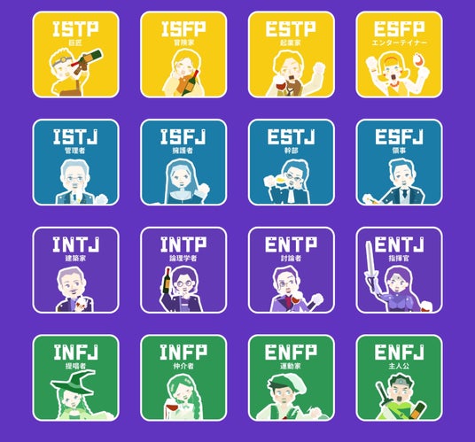 ご自身やお相手のことを思い浮かべながら質問に答えていくと、診断結果で個性的な16タイプの