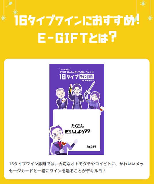 「ワイン選びをもっと楽しく」16タイプワイン診断で選ぶ、新感覚ワインギフト誕生!by wine@GIFT
