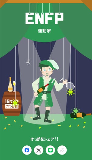 診断を通じて、普段は知り得ないお友達や家族の意外な一面を発見できたり、ワインをより楽しく、身近に感じられる体験を提供します。