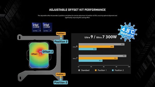 冷却性能に関しては、新たに設計されたフルプレーン&スクリューレス銅ベースは、卓越した放熱性を実現し、CycloBlade 9ファンは、パフォーマンスとノイズの完璧なバランスを保ち、性能を求めるユーザーの要求に応えます。さらに、金属製バックプレートと組み合わせた調整可能オフセットキットは、Intel Core Ultraシリーズプロセッサー用に特別に設計されており、熱源のオフセットに正確に対応し、安定した冷却を保証します。