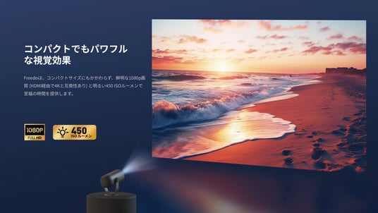 Dangbei Freedoは小型ながら性能は抜群です。450 ISOルーメンの明るさは、携帯型プロジェクターの中でも群を抜いており、90%以上のDCI-P3色域カバー率とD65国際標準色温度オプションを備えており、リアルな1080p画質を提供します。また、HDMIインターフェースを通じて4K動画も再生可能です。