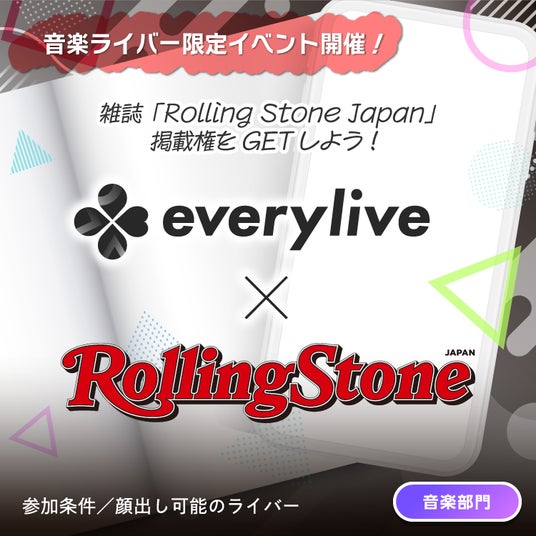 「Rolling Stone Japan」掲載をかけた音楽ライバー限定イベントをライブ配信アプリ「everylive(エブリライブ)」で開催