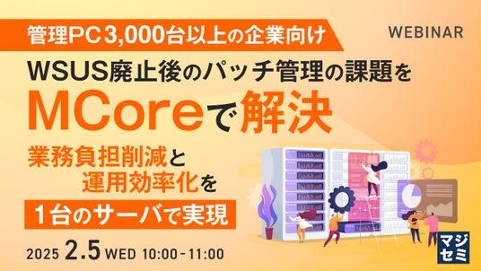 マジセミ株式会社は「【管理PC 3,000台以上の企業向け】WSUS廃止後のパッチ管理の課題をMCoreで解決」というテーマのウェビナーを開催します。