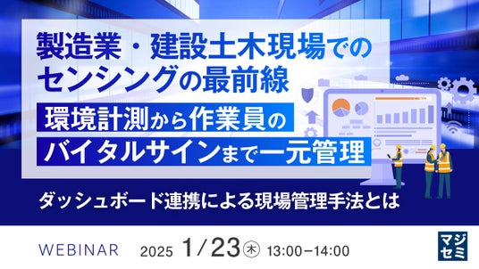 マジセミ株式会社は「「製造業・建設土木現場でのセンシングの最前線:環境計測から作業員のバイタルサインまで一元管理」」というテーマのウェビナーを開催します。